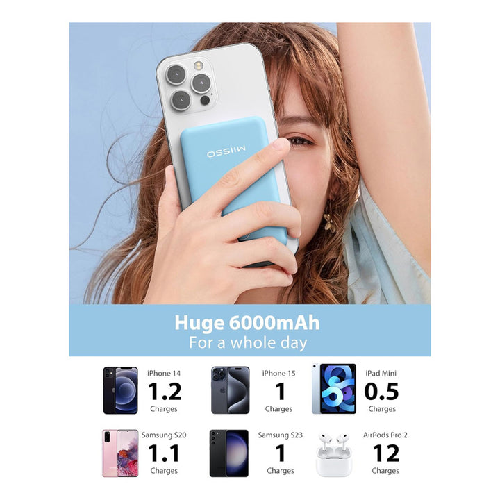 Con su capacidad de 6000 mAh, es suficientemente potente para cargar completamente un iPhone 16, e incluso permitirte alimentar tres dispositivos al mismo tiempo gracias a sus múltiples salidas. Es la solución ideal para quienes viven un estilo de vida activo y necesitan estar siempre preparados.