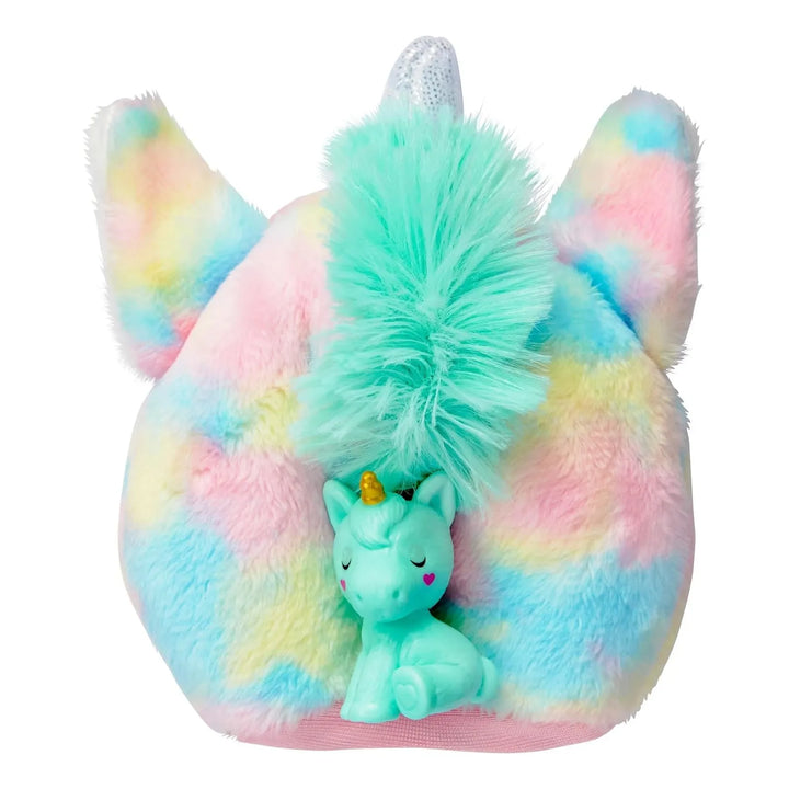 - Abre el empaque y descubre el unicornio de peluche.