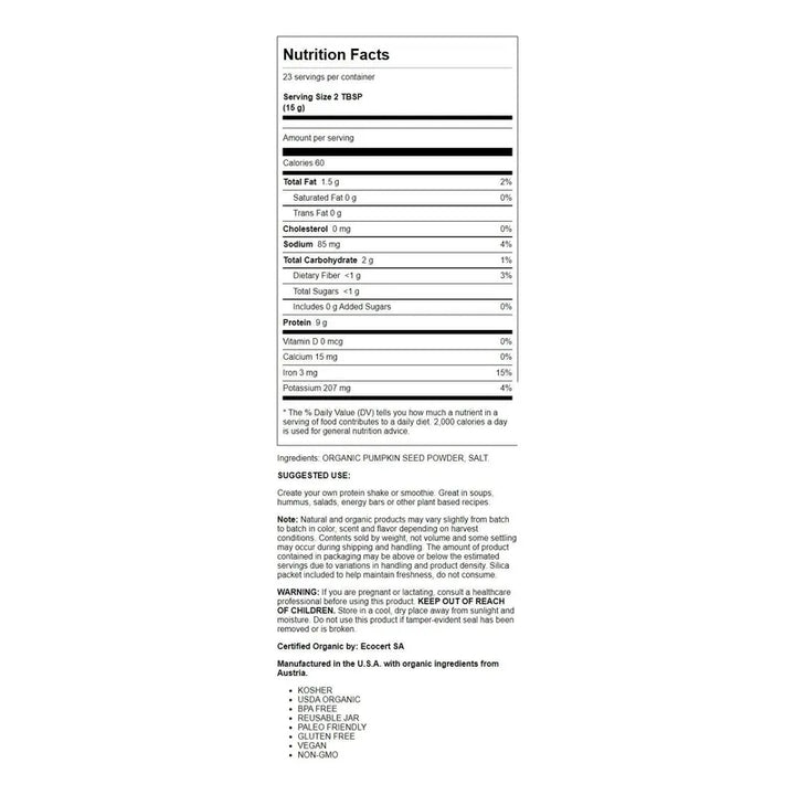 Este producto, elaborado a partir de semillas de calabaza prensadas en frío, es más que un simple complemento alimenticio. Es una fuente rica en proteínas y vitaminas que puede integrarse fácilmente en tu rutina diaria.