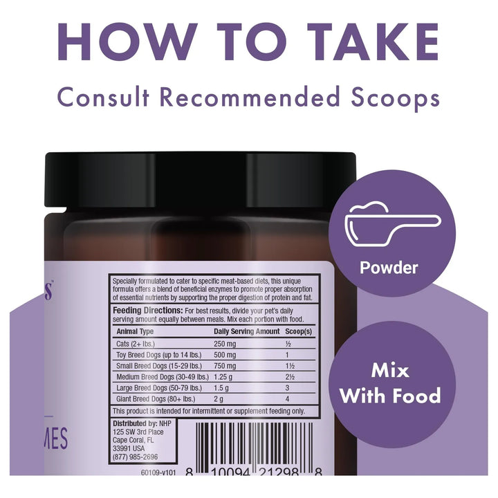Las mascotas en dietas carnívoras a menudo no producen suficientes enzimas digestivas por sí mismas. Esto lleva a: