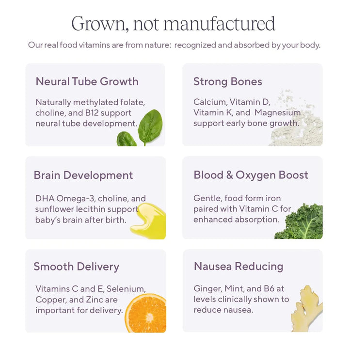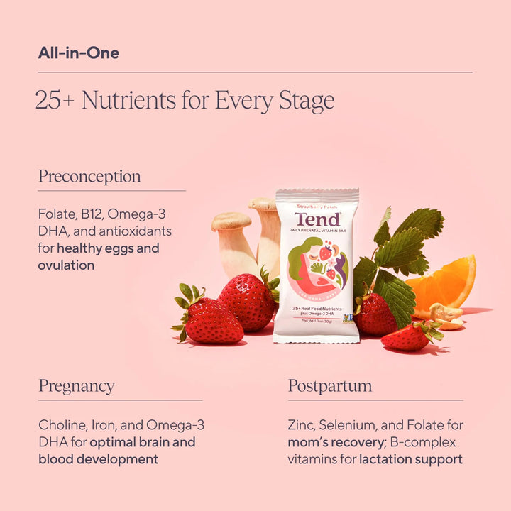 - 🍏 Nutrición completa en un bocado: 25 nutrientes esenciales para el embarazo, incluyendo DHA, vitamina D y ácido fólico, en una barra orgánica y deliciosa.