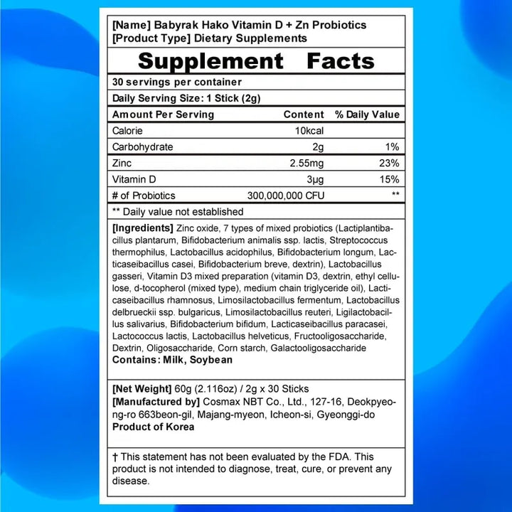 Además, estas barras están fabricadas bajo los más estrictos estándares de calidad en una instalación registrada por la FDA, lo que asegura que solo consumes lo mejor. Babyrak, una marca en la que puedes confiar, reconocida en Corea del Sur por su compromiso con suplementos de alta calidad para la salud infantil.