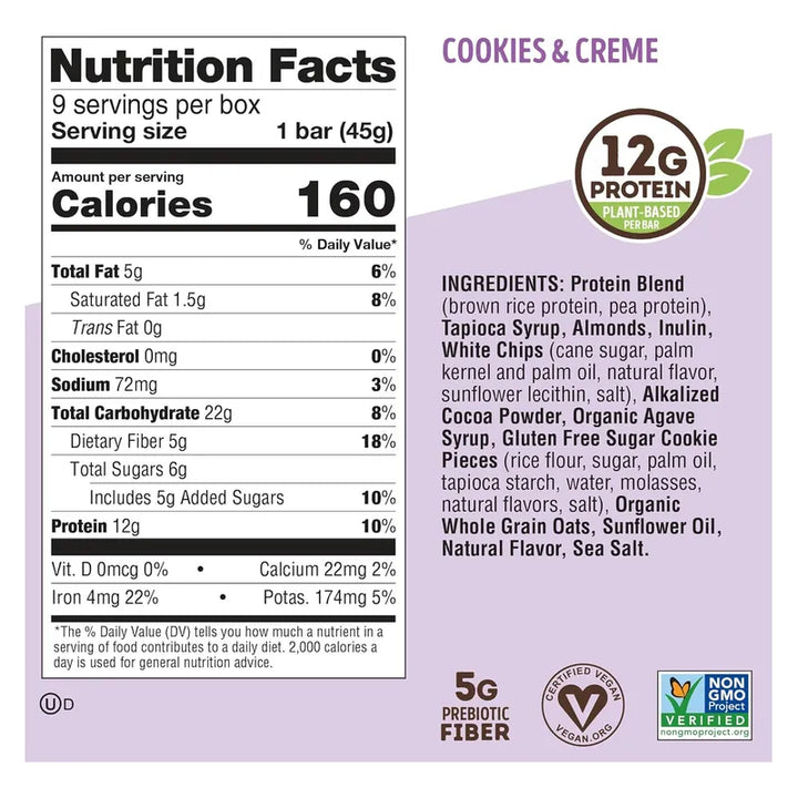 El deseo de algo dulce después de comer es común. Pero no todos los snacks dulces son iguales. La Barrita Completa de Galletas Cookies & Creme te ofrece la posibilidad de saciar tu antojo mientras priorizas tu salud. ¡Con 12 gramos de proteína de origen vegetal y 5 gramos de fibra por porción, te aseguramos una experiencia completamente satisfactoria! 😋