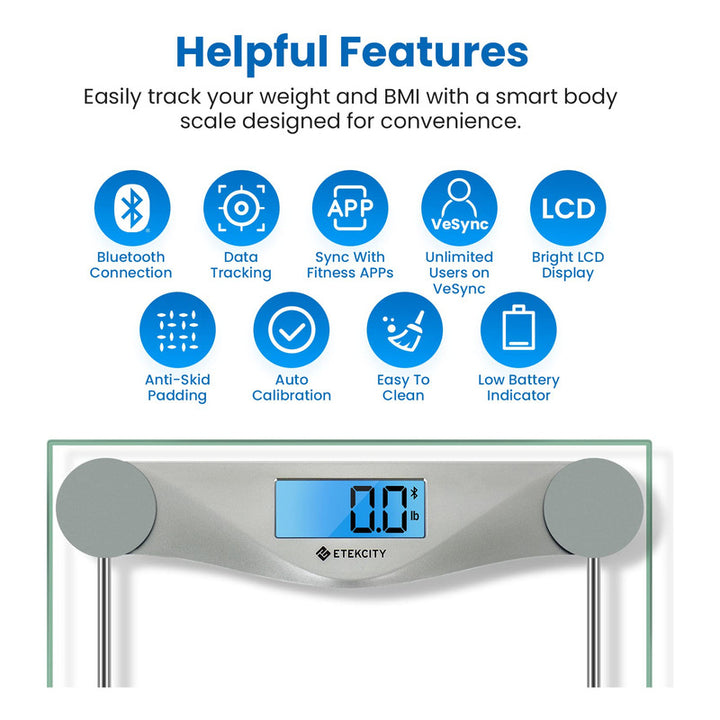Bascula De Baño Etekcity Pantalla Lcd Digital Bluetooth Con Alta Precision Y Modo Bebe
