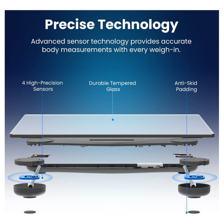 La báscula Etekcity utiliza tecnología avanzada para calcular con precisión tu peso e IMC. Su conexión Bluetooth te permite registrar y analizar estos datos directamente en tu teléfono inteligente, facilitando un seguimiento continuo de tu salud.