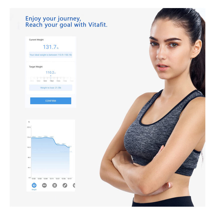 La Vitafit es más que una báscula: es un compromiso hacia una vida mejor. Desarrolladas y respaldadas por estándares ISO, nuestras básculas son testimonio de 20 años de dedicación con más de 45 millones de usuarios en todo el mundo. Queremos que hagas parte de esta comunidad que se reta a sí misma mientras comparte triunfos y transformaciones. Consulta datos históricos y usa estos insights para ajustar tus hábitos. Esta no es una báscula, es tu compañera de viaje hacia la salud.
