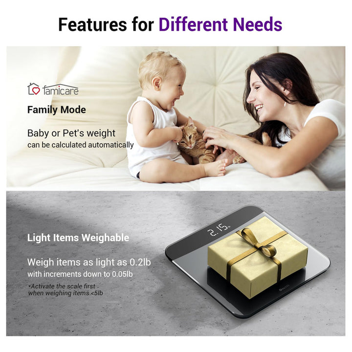 Ya no necesitas adivinar el peso de tu bebé o preocuparte por la exactitud de esas pequeñas mediciones. Con el modo Famicre, la báscula detecta automáticamente el peso de tu bebé o mascota, brindándote tranquilidad con cada medición.
