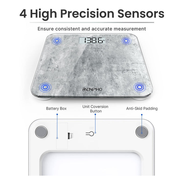 La Báscula Renpho Core 1S funciona mediante cuatro sensores de alta precisión que ofrecen una medición detallada de tu peso corporal. Al utilizarla, activa automáticamente sus sistemas de calibración para ofrecer datos exactos con cada uso.