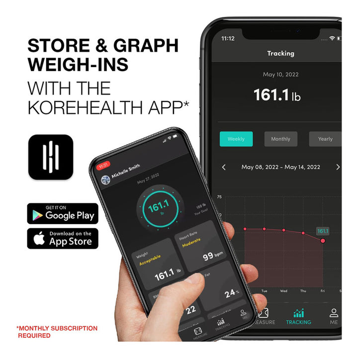Visualiza tu futuro más saludable ahora mismo. Con cada lectura precisa hasta por 0.2 lb o 0.05 kg, Korehealth Korescale G2 elimina las conjeturas. La ansiedad de los números inciertos quedará en el pasado. Las lecturas se sincronizan automáticamente con la aplicación KoreHealth, permitiéndote un seguimiento del progreso de forma sencilla.