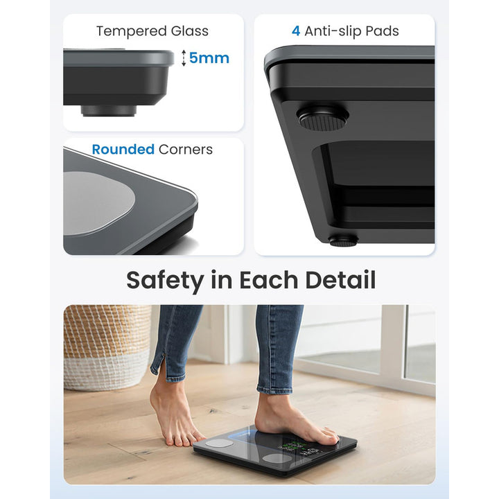 Cada número y resultado te acercan a un objetivo más consciente, sin perder tiempo configurando complicadas aplicaciones o artilugios. Solo párate sobre su duradera plataforma, y en segundos, una pantalla grande y luminosa despliega la información que necesitas. Con capacidad para soportar hasta 500 libras, cada miembro de la familia puede obtener sus mediciones precisas sin esfuerzo.