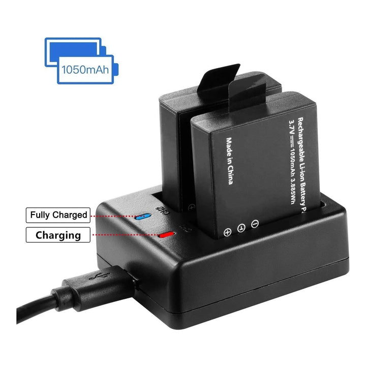 Batería Recargable 1050mAh Para Cámara De Acción Paquete De 3 Con Cargador Dual