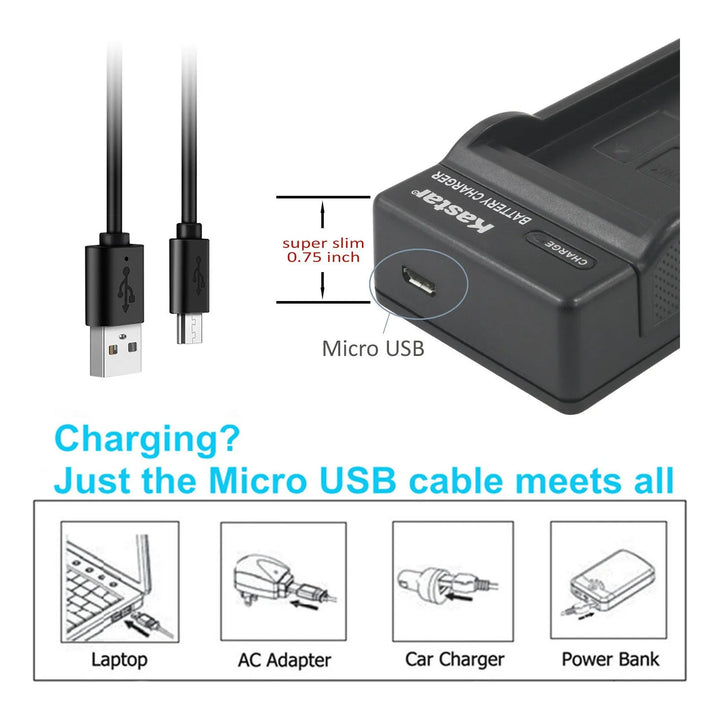 Con celdas japonesas de última generación, estas baterías ofrecen un rendimiento superior sin efecto memoria, garantizando que cada carga sea tan potente como la primera. El diseño inteligente del cargador USB te permite recargar en cualquier lugar: desde tu computadora hasta el enchufe del auto, manteniéndote siempre listo para capturar la siguiente foto perfecta.