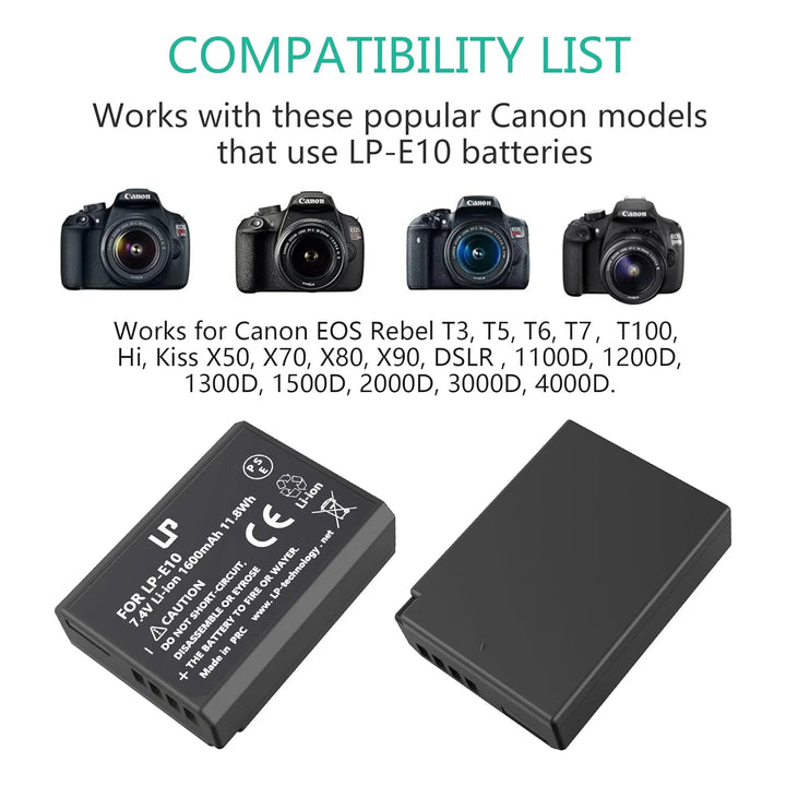 - 🔄 Compatibilidad Total: Funciona perfectamente con más de 15 modelos Canon, incluyendo las series Rebel y Kiss. Nunca más tendrás que preocuparte por la compatibilidad.
