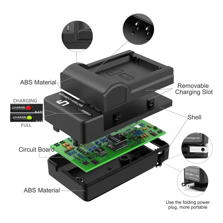 - 🌎 Uso Universal: El cargador acepta voltajes de 100-240V, lo que significa que puedes recargar tu batería en cualquier parte del mundo. ¡Perfecto para viajeros!