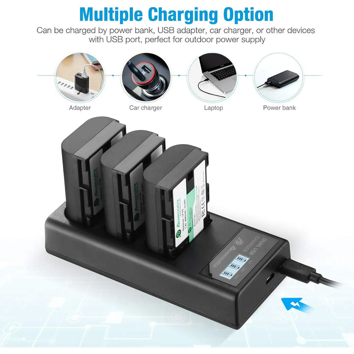 Baterías LP-E6 y LP-E6N con Cargador de Tres Canales para Cámaras Canon