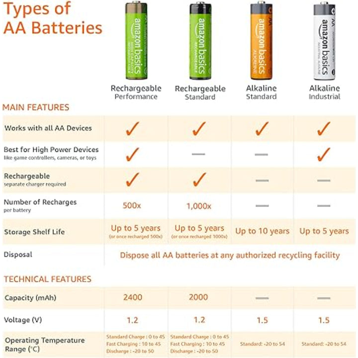 Además, su diseño sencillo y universal en color blanco se adapta perfectamente a cualquier dispositivo compatible con baterías AA, desde juguetes hasta dispositivos de alta tecnología. Confía en las baterías AmazonBasics para mantener tus dispositivos funcionando sin problemas.