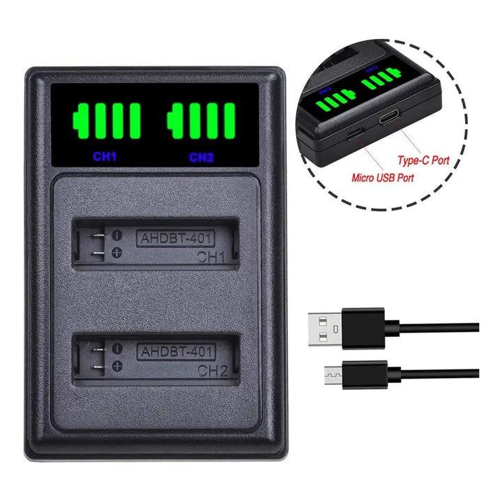 Baterias Recargables Para Gopro Hero 4 Paquete De 4 Con Cargador Dual USB