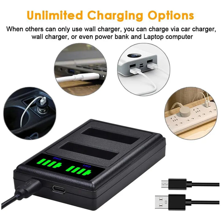 ¿Cansado de cargar una sola batería a la vez? Nuestro cargador USB dual te permite cargar dos baterías simultáneamente, ahorrándote tiempo y estrés. Con indicadores LED que muestran el estado de carga, siempre sabrás cuándo están listas para la acción. Además, su diseño portátil las hace ideales para llevar a cualquier lugar, garantizando que nunca te quedes sin energía cuando más la necesitas.