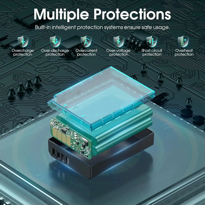 - Pantalla LCD Inteligente: Monitorea el nivel de carga de cada batería con solo un vistazo. 🔋