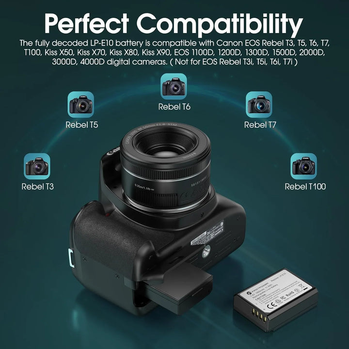 - 🎯 Compatibilidad Garantizada: Funciona perfectamente con modelos Canon EOS Rebel T7, T6, T5, T3, T100 y más.