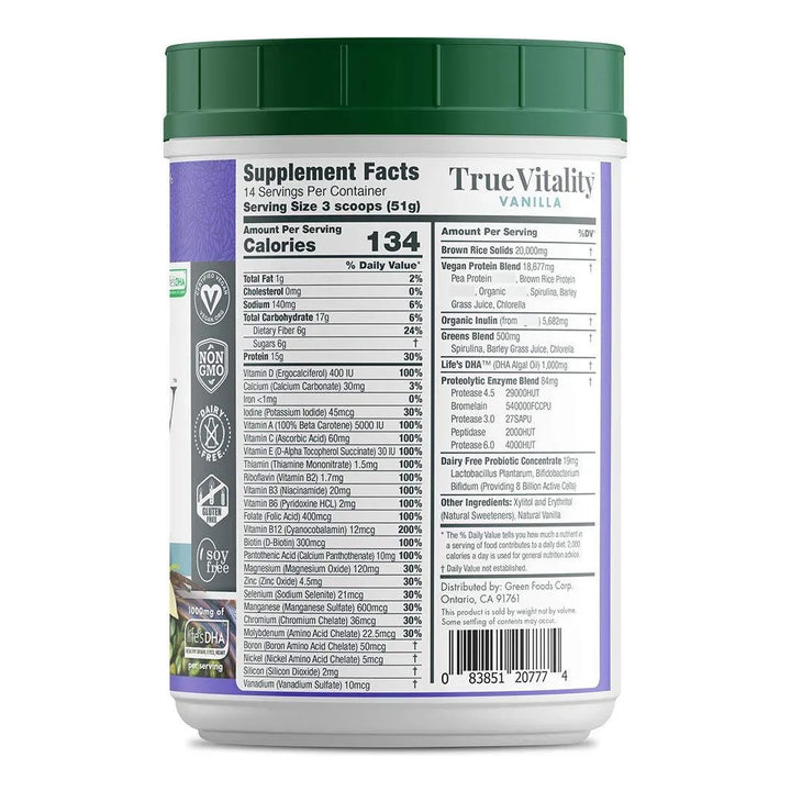 Batido De Proteína Vegetal Sabor Vainilla Con DHA 715g Energía Y Nutrición