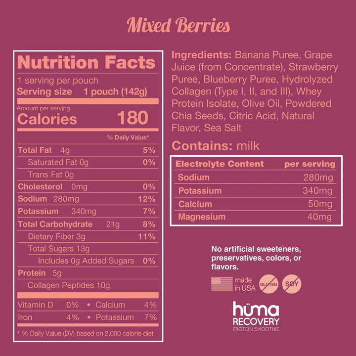 Batido De Proteínas De Recuperación Con Colágeno 20 Bolsas Huma Recovery Protein Smoothie