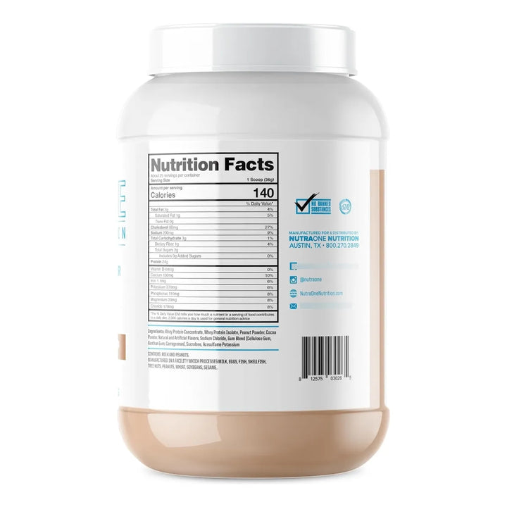 Batido En Polvo De Proteína De Suero Chocolate PB 900 Gramos NutraOne ProteinOne