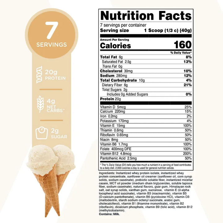 No tienes que preocuparte por los OGM o el gluten, porque este producto ha sido formulado para cuidar de tu salud con la más alta calidad. Cada porción de 1.43 oz se prepara en una instalación registrada por la FDA que cumple con las normas GMP, asegurando que solo lo mejor llegue a tu mesa.
