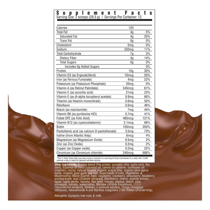 Batido Integral De Chocolate Sustituto De Comida 15.5 G Proteína Vegetal