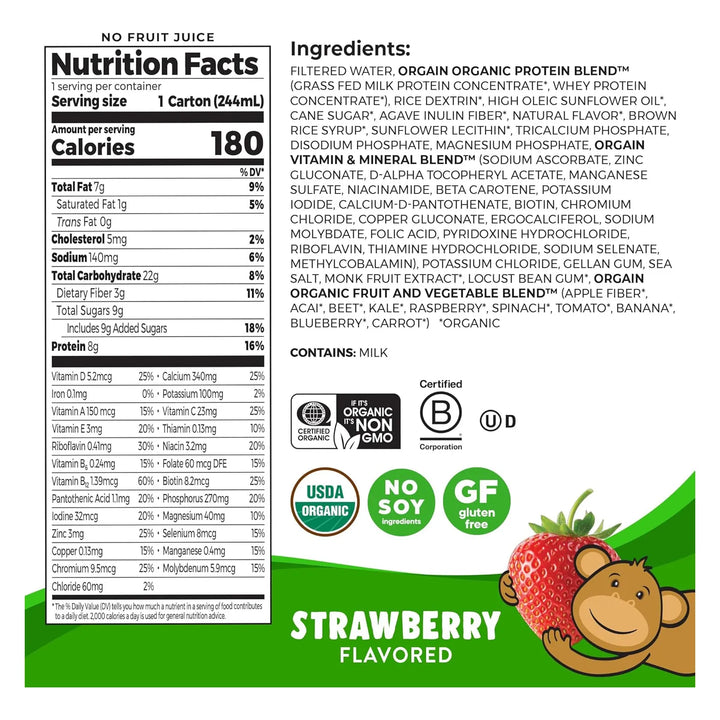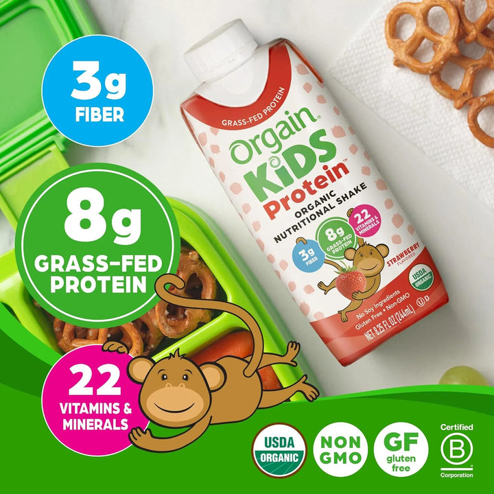 Batido Nutricional Orgánico Para Niños Sabor Fresa Orgain Kids 8.25 Oz Paquete De 12