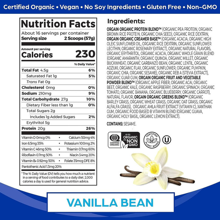 Batido Reemplazo De Comida Orgánico Orgain Vainilla Saludable