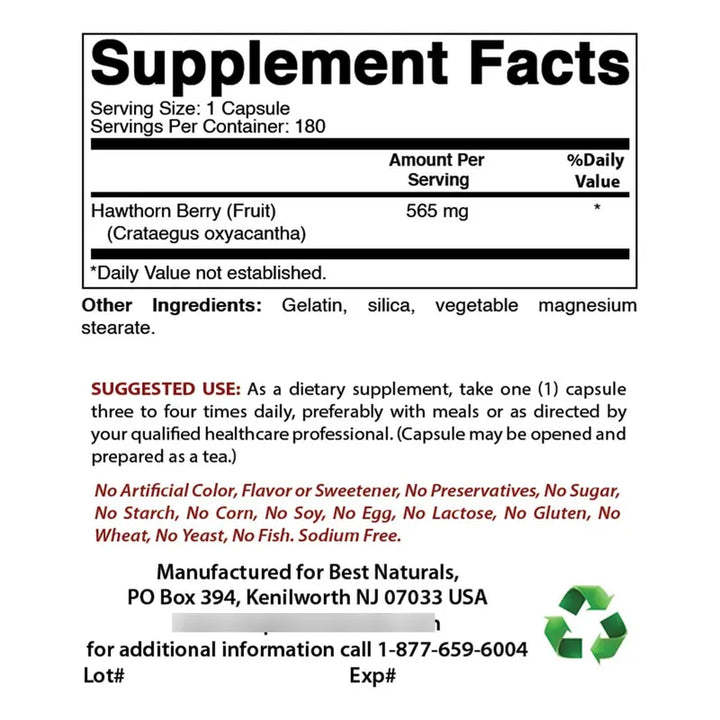 Bayas De Espino 565 Mg 180 Cápsulas Naturales Cuidado Saludable