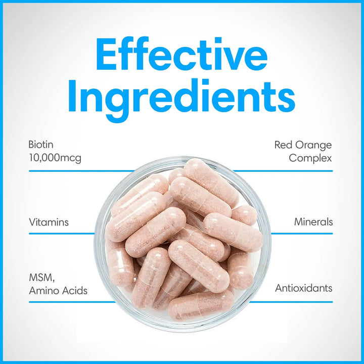 - 🌿 Cabello más grueso y resistente: Olvídate de las puntas abiertas y la caída excesiva gracias a 10,500 mcg de biotina y vitaminas B.