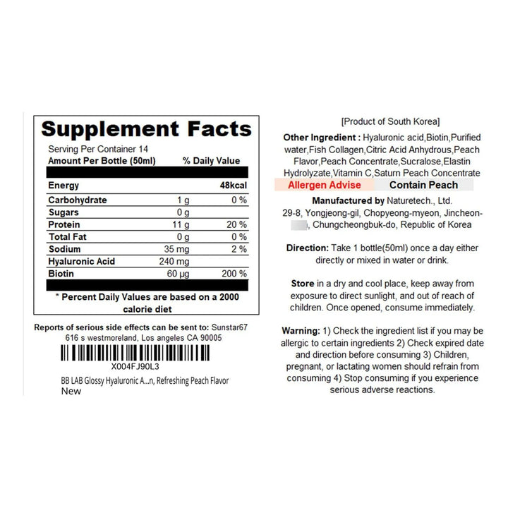 Bebida De Colágeno Coreana 10000 Mg Con Ácido Hialurónico Y Biotina Sabor Melocotón