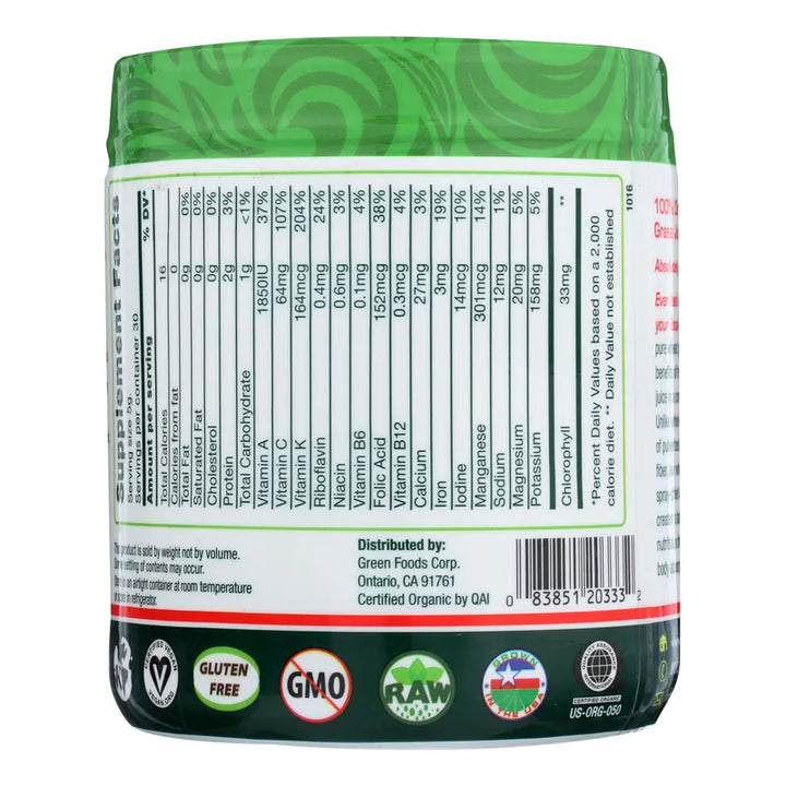 - Purificación Natural: Las enzimas activas y la clorofila dan a tu cuerpo un impulso en su capacidad natural para eliminar toxinas.