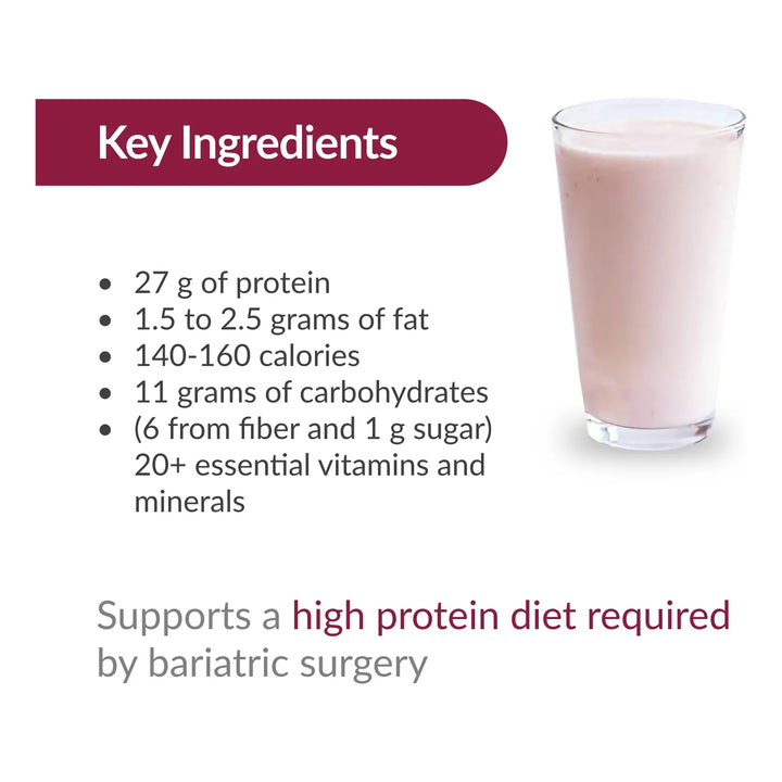 Esta bebida de reemplazo de comidas está formulada para proporcionar todos los nutrientes que tu cuerpo necesita en una sola porción. Su mezcla de proteínas, vitaminas y minerales trabaja en conjunto para apoyar tu salud muscular, tu energía y tu bienestar general, especialmente después de un procedimiento bariátrico.