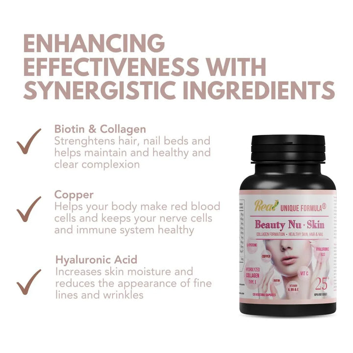 Belleza Máxima actúa desde el interior para transformar tu piel de manera integral. El colágeno hidrolizado se absorbe rápidamente en tu torrente sanguíneo, llegando directamente a las capas más profundas de la dermis donde estimula la producción de nuevas fibras de colágeno. El ácido hialurónico atrae y retiene moléculas de agua, proporcionando hidratación intensa que reduce la apariencia de arrugas. La L-cisteína y el cobre trabajan en sinergia para proteger tus células del estrés oxidativo, mientras que las vitaminas C y B5 potencian estos efectos para resultados visibles en menos tiempo.