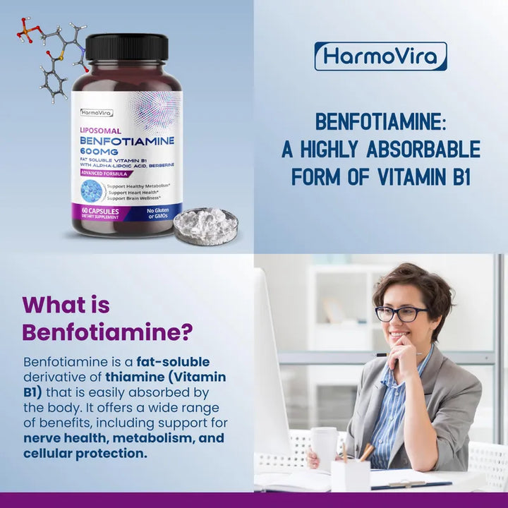 Imagina disfrutar de días llenos de energía, con un cuerpo funcionando a su máximo potencial. La combinación única de Benfotiamina, una forma soluble en grasa de vitamina B1, ácido alfa-lipoico y berberina, está diseñada específicamente para apoyar un metabolismo saludable, ayudándote a liberar toda la vitalidad que ya tienes dentro de ti.