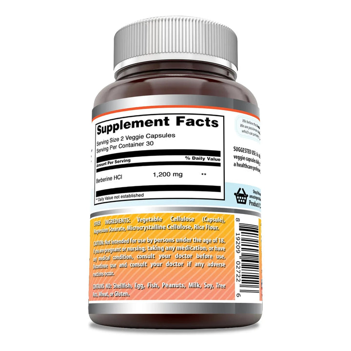 Berberina 1200 Mg 60 Capsulas Vegetales Sin Gluten Sin Omg