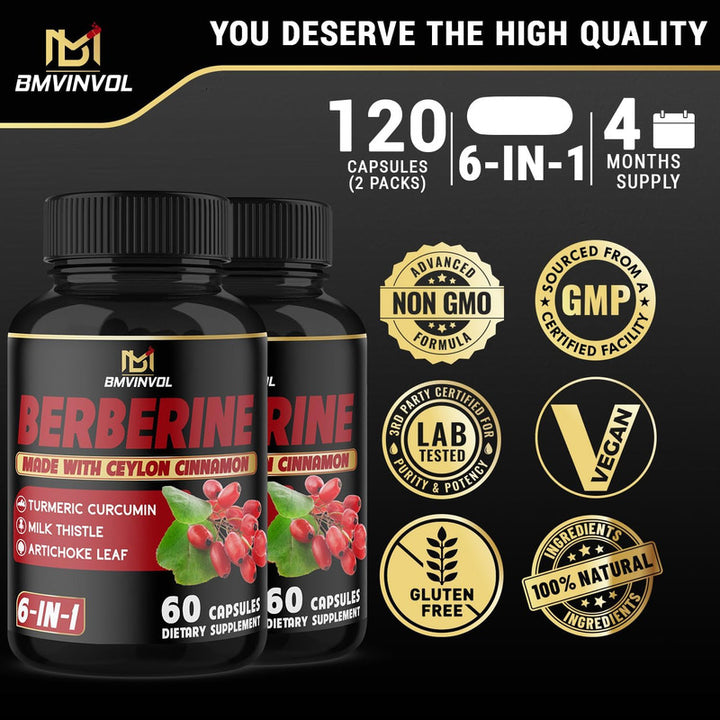 Berberina 4700 Mg Canela De Ceilan 120 Caps Apoya El Sistema Inmunológico Natural