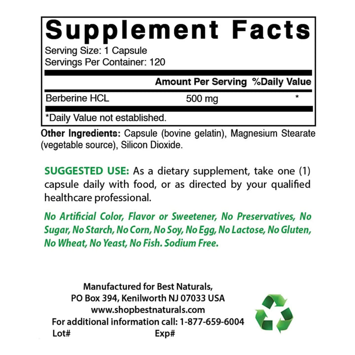 - 500 mg de Berberina HCL por cápsula: Potencia máxima en cada dosis 💪.
