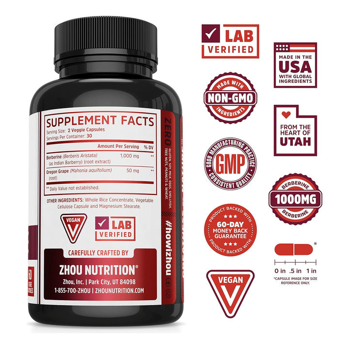 Berberina Con Uva Oregon Metabolismo De Grasas 60 Cap Vegano Sin Gluten