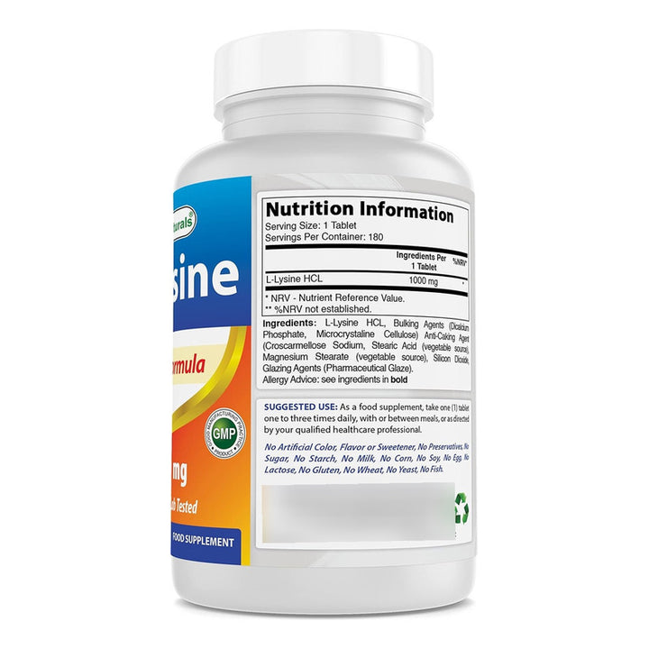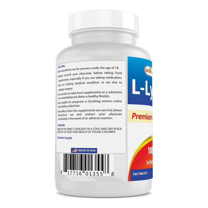 Best Naturals Lisina Doble Fuerza 1000 Mg 180 Capsulas Energía