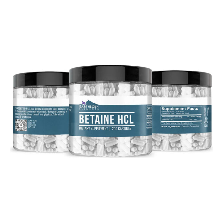 La Betaína HCl es un compuesto que ayuda a aumentar los niveles de ácido clorhídrico en el estómago, esencial para descomponer los alimentos y absorber nutrientes. Cuando los niveles de este ácido son bajos, pueden surgir problemas como indigestión, hinchazón y deficiencias nutricionales. Este producto actúa directamente para equilibrar tu pH estomacal, promoviendo una digestión eficiente y comfort.