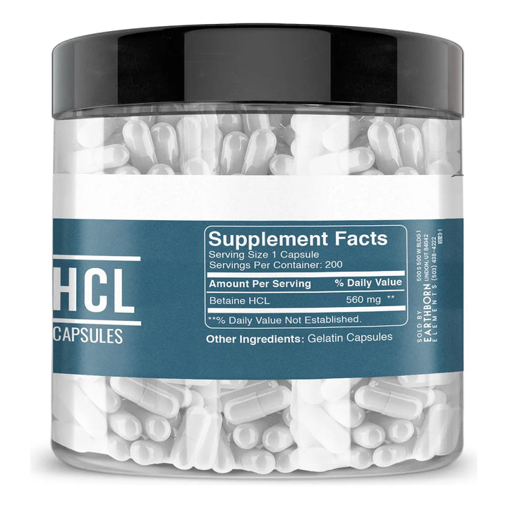 Betaína HCL 200 Cápsulas Puro Sin Aditivos Apoyo Digestivo