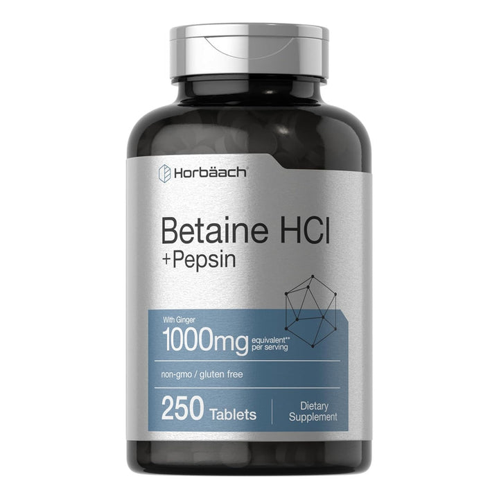 Betaína Hcl Con Pepsina 1000 Mg 250 Tablas Horbaach Suplemento Digestivo