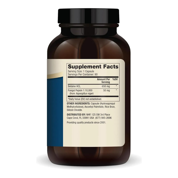 Con 650 mg de Betaína HCL y 50 mg de Pepsina por cápsula, este producto es tu aliado para una digestión saludable. Libre de OMG, gluten y soja, cumple con los más altos estándares de calidad. No esperes más para sentir la diferencia. Tu bienestar digestivo está a solo un clic de distancia.