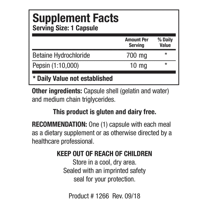 Betaine Plus HP Suplemento Digestivo De Alta Potencia Con HCL Y Pepsina 90 Capsulas