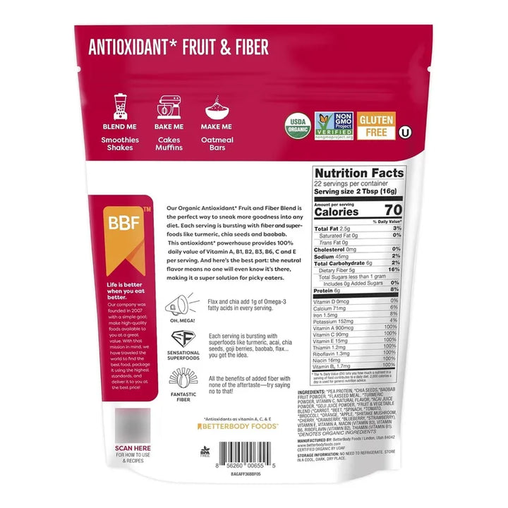 BetterBody Foods Mezcla Orgánica De Superalimentos Antioxidantes Frutas Y Fibra