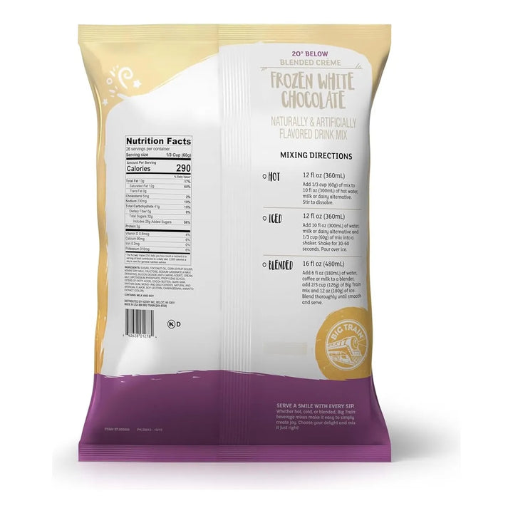 Big Train 20 Below Mezcla Bebida Chocolate Blanco Congelado 3.5 Lb